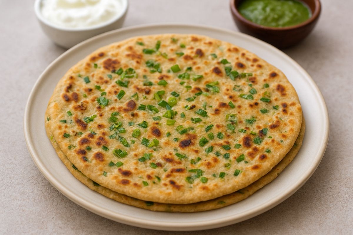 हरे प्याज का पराठा एक स्वादिष्ट, खुशबूदार और पौष्टिक देसी पराठा है, जो खासतौर पर नाश्ते या हल्के लंच के लिए बनाया जाता है. इसमें ताज़ा हरे प्याज़ को गेहूं के आटे और हल्के मसालों के साथ मिलाकर पराठा तैयार किया जाता है, जिससे इसका स्वाद बहुत ही लाजवाब हो जाता है। बाहर से हल्का कुरकुरा और अंदर से नरम रहने वाला यह पराठा बच्चों से लेकर बड़ों तक सभी को पसंद आता है. हरे प्याज में मौजूद फाइबर, विटामिन और मिनरल्स इसे सेहत के लिए भी फायदेमंद बनाते हैं. यह पराठा झटपट तैयार हो जाता है और इसके लिए किसी खास तैयारी की जरूरत नहीं होती। दही, मक्खन या अचार के साथ परोसा गया हरे प्याज का पराठा एक संपूर्ण और संतुलित भोजन माना जाता है, जो स्वाद और पोषण दोनों का बेहतरीन मेल है।