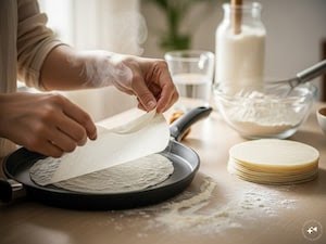5. इसे कुछ सेकंड तक पकने दें और जैसे ही यह तवे को छोड़ने लगे, धीरे से निकाल लें. ज्यादा पकाने पर शीट सख्त हो सकती है, इसलिए इसे ज्यादा देर न रखें।