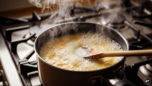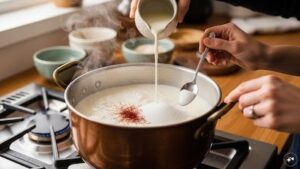 तरीका (स्टेप-बाय-स्टेप): सबसे पहले, एक भारी तले वाले सॉस पैन में दूध उबालें। मीडियम आंच पर तब तक पकाएं जब तक वह आधा न रह जाए। चीनी और मिल्क पाउडर/खोया डालें। जब दूध रबड़ी जैसा गाढ़ा हो जाए, तो आंच बंद कर दें और इसे पूरी तरह ठंडा होने दें।