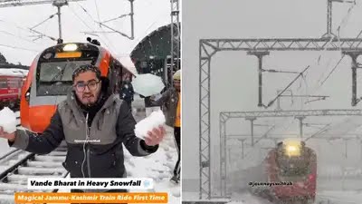 दिल्ली: वंदे भारत में शख्स जम्मू-कश्मीर के सफर का अनुभव ले रहा होता है। इस दौरान जब उसे बनिहाल स्टेशन पर भारी बर्फबारी देखने को मिलती है, तो वह खुशी से खिल उठता है और वीडियो बनाकर मंत्रमुग्ध कर देने वाले नजारा को दिखाता है।