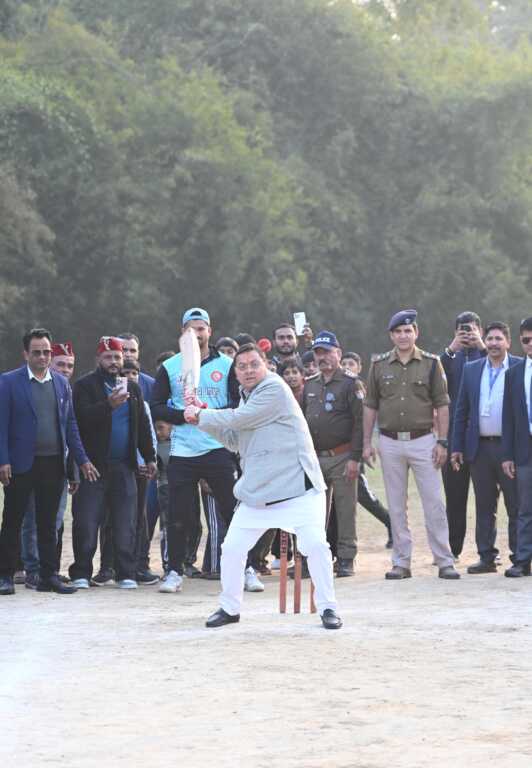 उत्तराखंड के खटीमा मे क्रिकेट के मैदान मे दिखाए सीएम धामी ने हाथ………