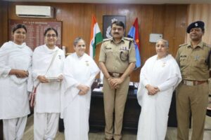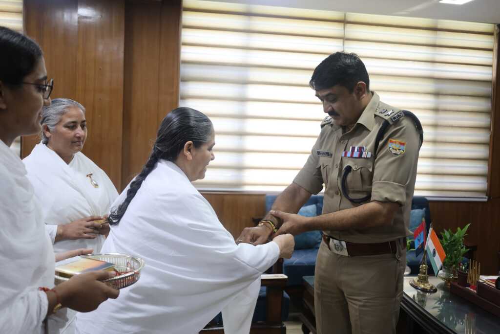 देहरादून: ब्रह्मकुमारी संस्था, देहरादून से आयी बहनों द्वारा वरिष्ठ पुलिस अधीक्षक देहरादून से शिष्टाचार भेंट की गयी, भेंट के दौरान ब्रह्मकुमारी संस्था, की बहनों द्वारा वरिष्ठ पुलिस अधीक्षक को देहरादून की कलाई पर राखी बांधते हुए उनकी दीर्द्यायु की कामना की गयी। इस दौरान उपस्थित बहनों द्वारा महिला सुरक्षा के प्रति एसएसपी देहरादून द्वारा किये जा रहे प्रयासों की सराहना करते उन्हें धन्यवाद ज्ञापित किया गया।