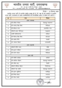 देहरादून: भाजपा उत्तराखंड ने प्रदेश पदाधिकारियों की नई सूची की जारी।