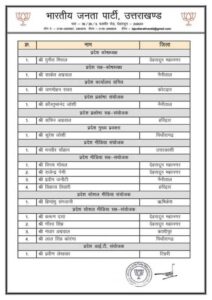 उत्तराखंड बीजेपी की प्रदेश कार्यकारिणी हुई घोषित