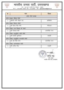 लो जी उत्तराखंड बीजेपी की प्रदेश टीम हुई घोषित