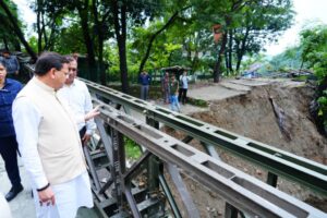 देहरादून: मुख्यमंत्री पुष्कर सिंह धामी ने गुरुवार को राज्य आपदा परिचालन केंद्र से प्रदेशभर में हुई अतिवृष्टि की समीक्षा करने के बाद मसूरी रोड एवं किमाड़ी क्षेत्र का स्थलीय निरीक्षण किया। राहत कार्यों के निरीक्षण के दौरान मुख्यमंत्री ने अधिकारियों को निर्देश दिए कि मुख्य सड़कों की शीघ्र मरम्मत करते हुए यातायात सामान्य बनाया जाए तथा आवश्यकतानुसार लोगों के आवागमन हेतु वैकल्पिक व्यवस्थाएं तत्काल प्रभाव से सुनिश्चित की जाएं।