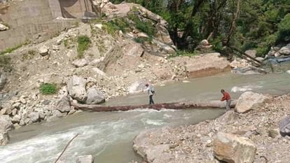 उत्तराखंड में ब्रिडकुल की लापरवाही से लटक गया चार पुलों का निर्माण, बल्ली के सहारे पिलंग गाड को पार कर रहे लोग……