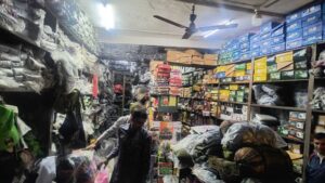 अभियुक्त दुकानदार की दुकान से आर्मी न्यू पैटर्न कम्बट वर्दी का प्रतिबंधित कपडा बरामद किया।