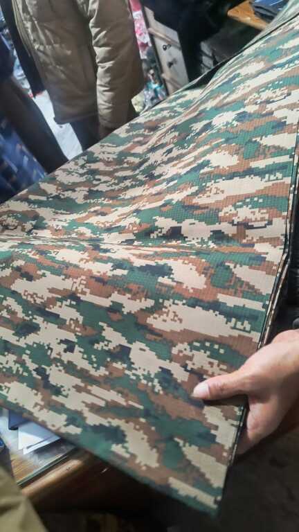 अभियुक्त दुकानदार की दुकान से आर्मी न्यू पैटर्न कम्बट वर्दी का प्रतिबंधित कपडा बरामद किया।