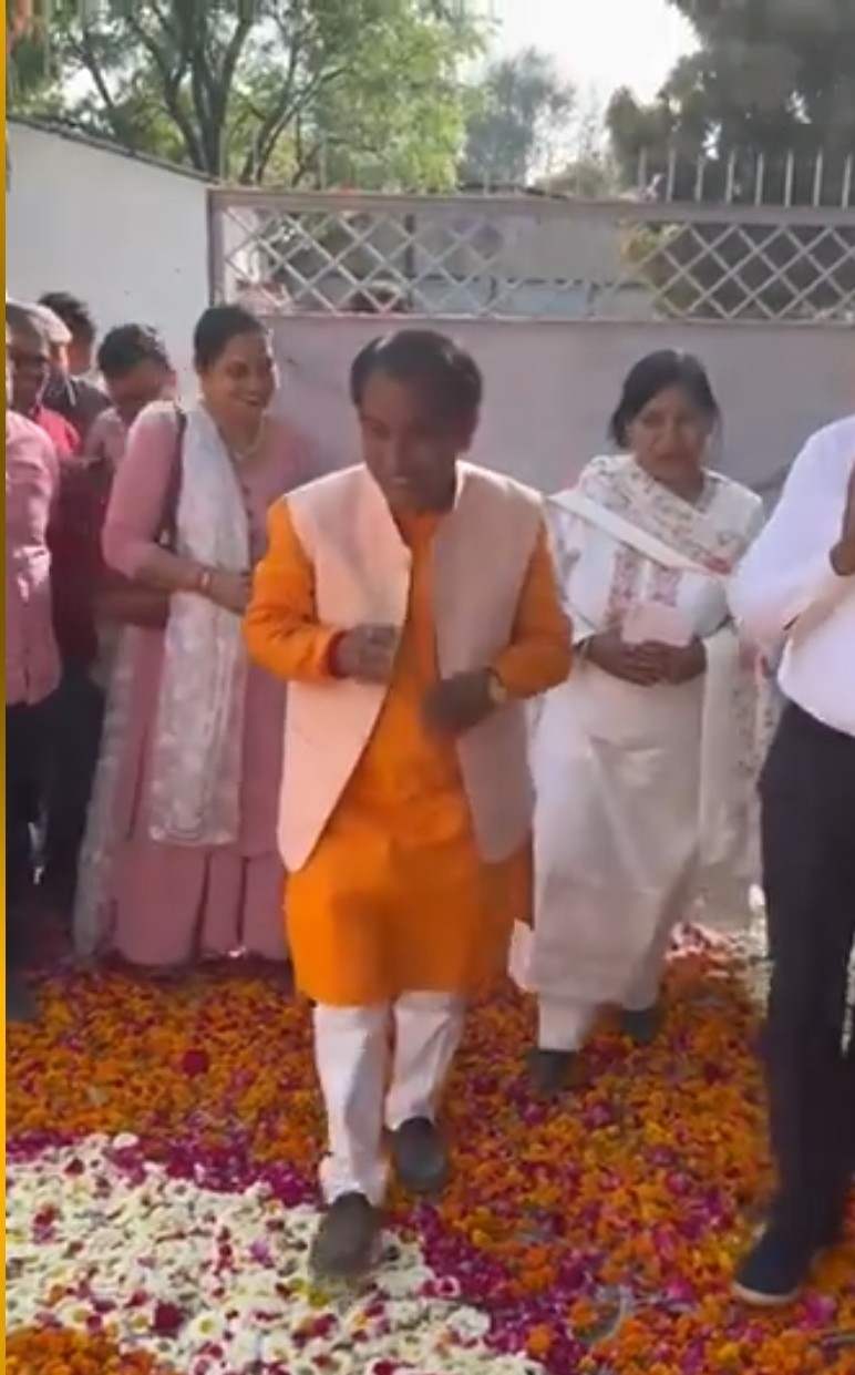 शपथ लेने के बाद कैबिनेट मंत्री धन सिंह रावत अपने सरकारी आवास पहुंचे जहां उनका भव्य स्वागत किया गया यही नहीं उनके भव्य स्वागत में मेन गेट से घर तक फूलों का कारपेट बिछाया गया। जिस पर चलकर धन सिंह रावत अपने घर के अंदर पहुंचे।