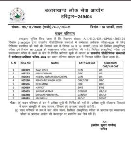 देहरादून: उत्तराखण्ड लोक सेवा आयोग, चयन परिणाम रिपोर्ट – 2024.