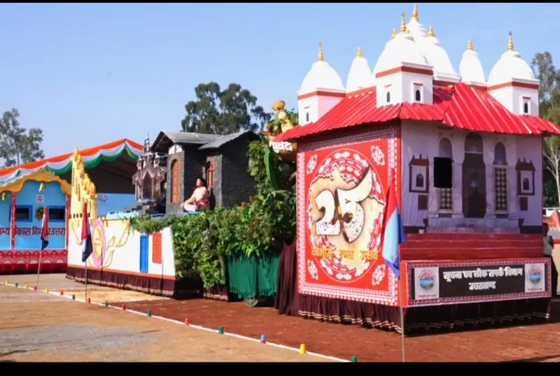 झांकी के प्रथम भाग में गंगा मन्दिर, मुखवा को प्रदर्शित किया गया, जो माँ गंगा का शीतकालीन प्रवास है। झांकी के अग्रिम केबिन में उत्तराखण्ड गठन के 25 गौरवशाली वर्ष प्रदर्शित किए गए , जो राज्य की विकास यात्रा, सांस्कृतिक पहचान और निरंतर प्रगति को दर्शाते हैं।